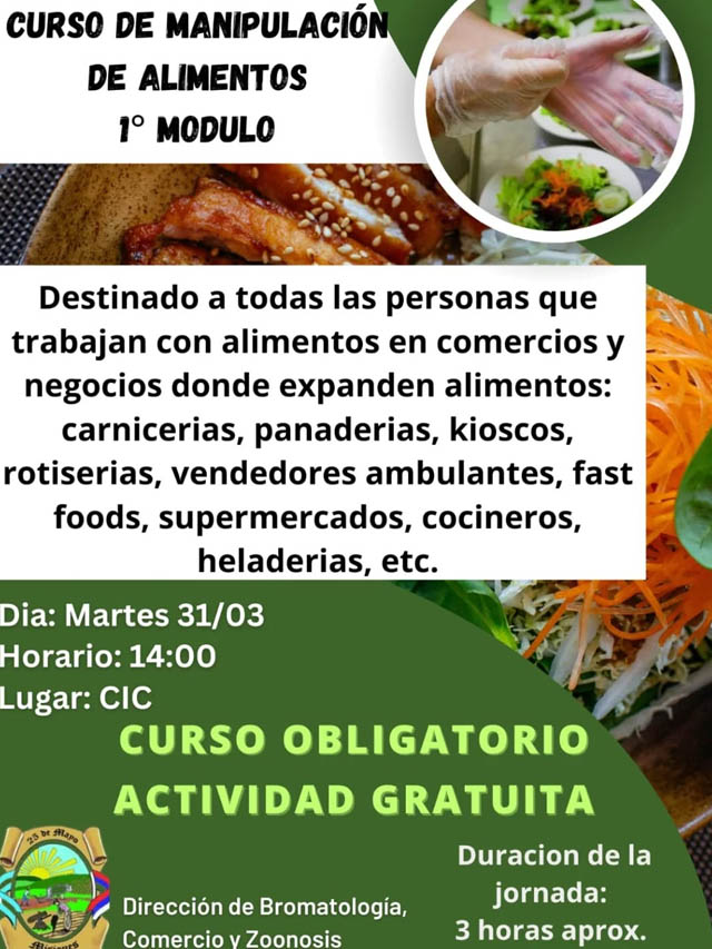 AGENCIA MISIONES.UNO | La Municipalidad de 25 de Mayo informó que se desarrollará un curso de manipulación de alimentos destinado a trabajadores del rubro, con carácter obligatorio y acceso gratuito para la comunidad.