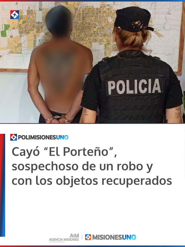 MISIONES.UNO – En Eldorado, la Policía detuvo a Hernán V., de 30 años, conocido en el ámbito delictivo como “El Porteño”, en el marco de una investigación por un robo ocurrido en una vivienda del kilómetro 5. Además, se logró recuperar la totalidad de los bienes sustraídos.